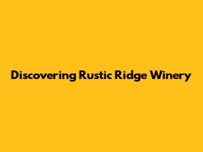 Discovering Rustic Ridge Winery