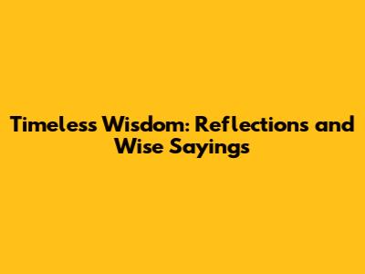 Timeless Wisdom: Reflections And Wise Sayings